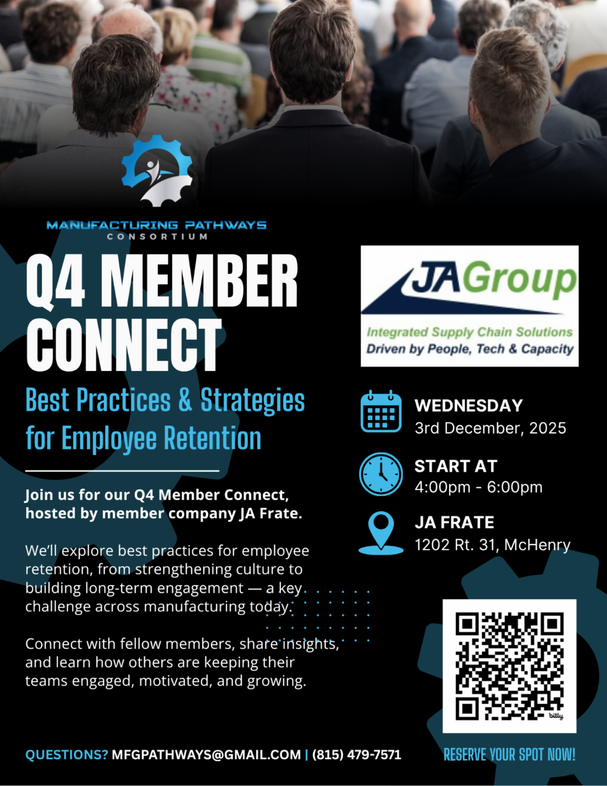 Join the Manufacturing Pathways Consortium for their Q4 Member Connect! Hosted by JA Frate, explore the best practices and strategies for employee retention, from strengthening culture to building long-term engagement.